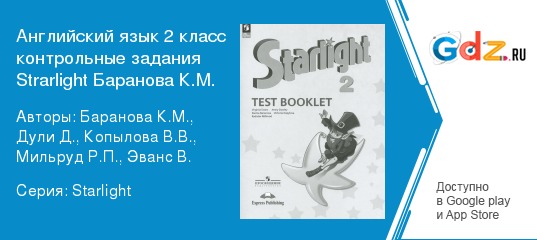 Иностранный уже давно закрепился в числе наиболее важных школьных предметов. Его успешное усвоение дает ученикам конкурентное преимущество при поступлении в высшие учебные заведения и при приеме на работу. Одной из главных задач школьного образования поэтому становится подготовка уверенно владеющих английским языком выпускников. С этой целью также формируются специализированные классы с углубленным изучением английского. Здесь ребятам предстоит гораздо более серьезная и ответственная работа. Даже в безвыходных на первый взгляд ситуациях есть прекрасное решение. С целью облегчения и эффективности самостоятельной подготовки по предмету создаются специализированные учебные пособия к основному комплекту учебников и рабочих тетрадей. Отличным подспорьем для классов с углубленным изучением иностранного станут ГДЗ по английскому языку контрольные задания Starlight 2 класс Баранова углубленный уровень.